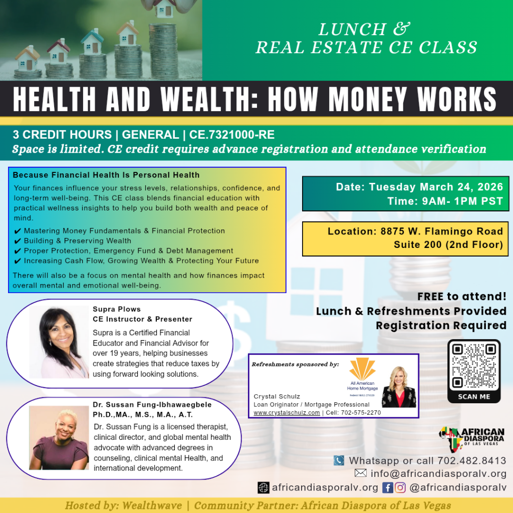 Join us for a powerful 3 Credit Hour General CE Class (CE.7321000-RE) that blends financial education with practical wellness insights — including how money impacts your mental and emotional well-being.